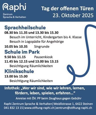 Am Donnerstag, 23. Oktober 2025 begrüssen wir Sie gerne an der Sprachheilschule und Schule im Park in Steinen.